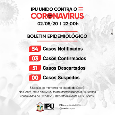 Municipal dos Casos em Ipu (CE). Até o presente momento (02/05) 22h: 54