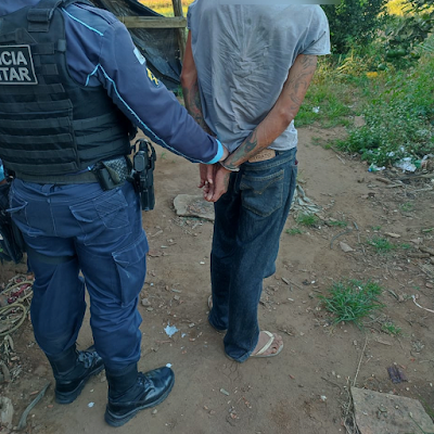 violência doméstica e ameaça, foi preso pela Polícia Militar no