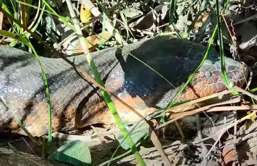 Uma sucuri de aproximadamente seis metros foi flagrada tomando sol às margens de um rio na cidade turística de Bonito, no Mato Grosso do Sul. O momento foi publicado pelo ambientalista Vilmar Teixeira em seu perfil no Instagram.