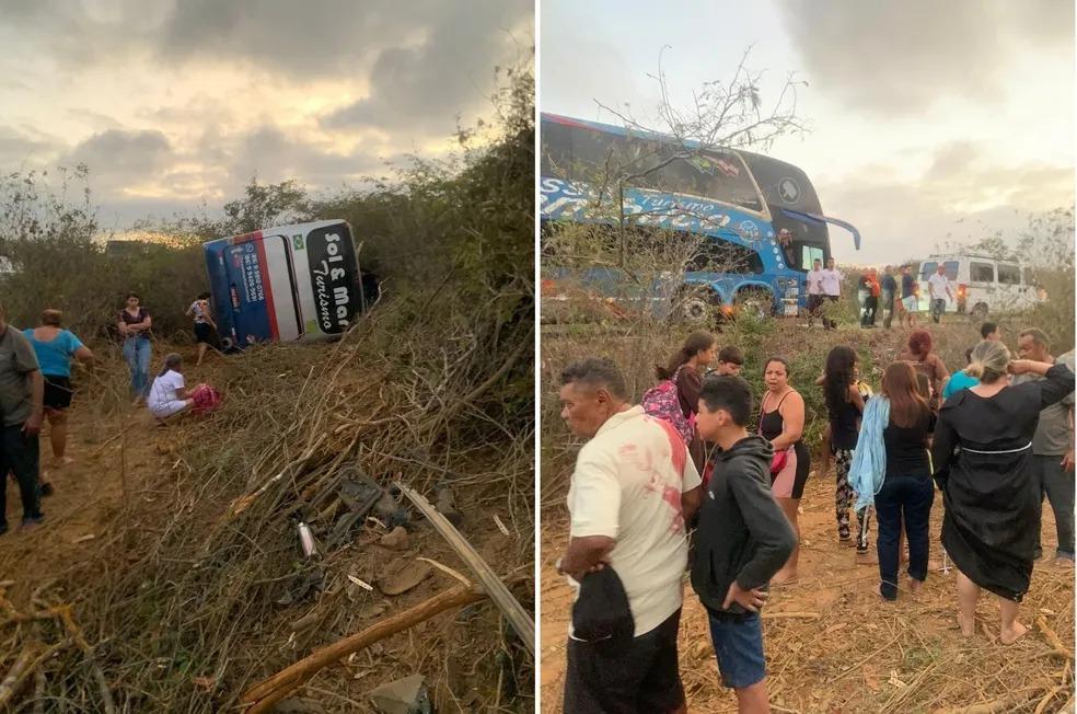 Uma pessoa morreu e pelo menos 20 ficaram feridas após um ônibus com romeiros de Teresina, no Piauí, tombar em Pernambuco a caminho do Ceará. Segundo os bombeiros, 45 fiéis estavam no veículo fretado no momento do acidente, ocorrido na rodovia PE-585, na altura da Serra da Rodagem, em Araripina, no limite com Ipubi.