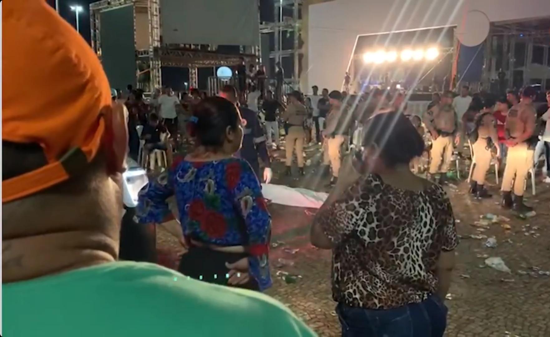 Imagens que circulam nas redes sociais mostram moradores que compareceram à festa correndo pela praça para fugir da confusão.