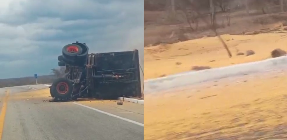 Um caminhão com um carregamento de milho tombou na rodovia BR-222, no município de Sobral, no interior do Ceará, neste domingo (18). Na ocasião, a mercadoria ficou espalhada no chão e acabou sendo saqueada pela população.