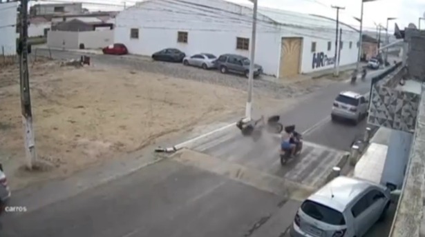 Imagens de uma câmera de segurança mostram o momento em que a motocicleta derrapa e os três ocupantes caem na via. Após o acidente, equipes de socorro foram acionadas para atender as vítimas. O homem foi levado ao Hospital Adília Maria, mas já deu entrada sem vida.
